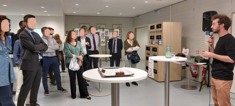 Enfin, le troisième café-pitch, dans un tout autre registre, a permis aux agents de découvrir les bienfaits de la valorisation de leur urine en fertilisants agricoles. Louise Raguet, designer et membre du programme de recherche OCAPI, est venu présenter comment les excrétats humains, riches en azote, en phosphore et en potassium, peuvent remplacer les engrais chimiques et fossiles utilisés dans 90% de l‘agriculture mondiale. Aujourd’hui, le recours aux engrais azotés chimiques représente 2% des émissions de gaz à effets de serre mondiales. Actuellement, ces nutriments sont perdus dans les eaux usées. Pour limiter leur rejet en rivière, ils sont partiellement détruits en station de traitement des eaux usées, processus énergivore et dépendant de ressource fossile, en plus d’être émetteur de GES. Le traitement n’étant pas efficace à 100%, les rejets de ces stations contiennent encore 40% de l’azote provenant de notre urine, générant de fait une pollution importante dans les cours d’eau. Pour cette designer, la mise en place d’un système de gestion de nos urines et matières fécales qui soit circulaire, est un enjeu majeur à la fois pour les écosystèmes aquatiques et pour favoriser une agriculture durable et indépendante de ressources fossiles. Le programme Ocapi a réalisé l’analyse de cycle de vie (ACV) de la production d’1 kg de blé fertilisé à l’urine humaine sur un champ situé à 100km du lieu de collecte, comparé au système alimentation-excrétion linéaire actuel (uriner dans une toilette à chasse d’eau et produire 1kg de blé fertilisé avec des engrais chimiques). Cette analyse a montré que les émissions de GES du système alimentation-excrétion circulaire étaient divisées par 4. Le bilan est par ailleurs favorable sur tous les autres aspects (consommation d’eau, consommation énergétique, état des écosystèmes aquatiques, etc).