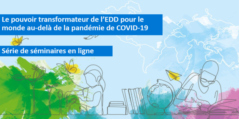 Transformer l’apprentissage pour transformer les sociétés vers la durabilité est l’objectif du cadre de l’EDD pour 2030. Cette feuille de route pour l’EDD pour la décennie 2020-2030 sera officiellement lancée lors de la Conférence mondiale de l’UNESCO sur l’EDD qui se tiendra du 17 au 19 mai 2021 à Berlin, en Allemagne. Dans la perspective de cette Conférence mondiale, l’UNESCO vous invite à participer à une série de séminaires en ligne sur l’EDD, en coopération avec le Ministère Fédéral Allemand de l’Éducation et de la Recherche, et avec la Commission allemande pour l’UNESCO en tant que partenaire consultatif. Les discussions et aboutissements de cette série de séminaires seront utilisés pour développer le programme de la conférence et à définir son ordre du jour.